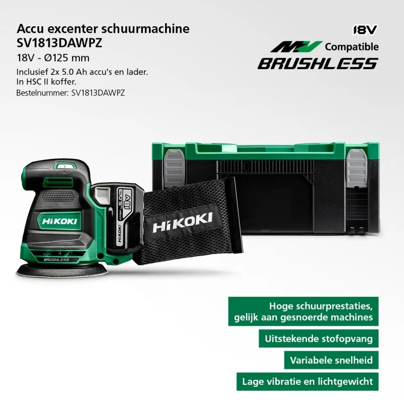 ![HiKOKI SV1813DAWPZ Excenter Schuurmachine | 125 Mm | 18 Volt 5,0 Ah Li-Ion | +HSC [SV1813] - Image 2](https://www.hikokiwinkelnl.com/wp-content/uploads/2024/11/HiKOKI_SV1813DAWPZ_SV1813_ext_2.webp)