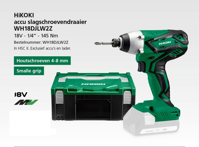 ![HiKOKI WH18DJLW2Z Slagschroevendraaier | 18 Volt Li-Ion | 145 Nm | Basic | HSC II [WH18DJLW2Z]](https://www.hikokiwinkelnl.com/wp-content/uploads/2024/11/HiKOKI_WH18DJLW2Z_WH18DJLW2Z.webp)